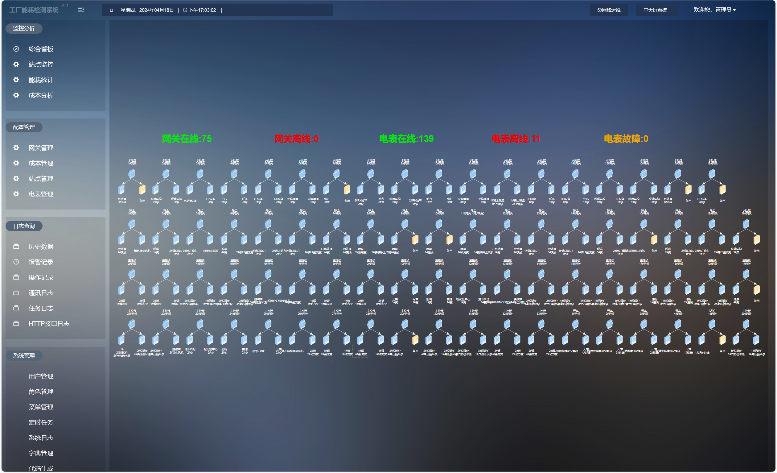 平台提供独立监控大屏,实时展示系统网络拓扑图、服务器CPU/内存利用率及设备在线状态。节点通信正常或故障一目了然,大幅降低运维排查难度。